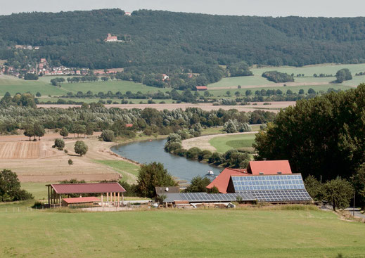 Unsere Einrichtung liegt im Weserbergland in Alleinlage von Rinteln-Hohenrode, gut angebunden an das Straßennetz, ca. 15 km von Hameln entfernt. Sie befinden sich hier in landschaftlich sehr reizvoller Lage inmitten des Landschaftsschutzgebiets nahe dem Wald und mit beeindruckendem Blick auf die Weser.
